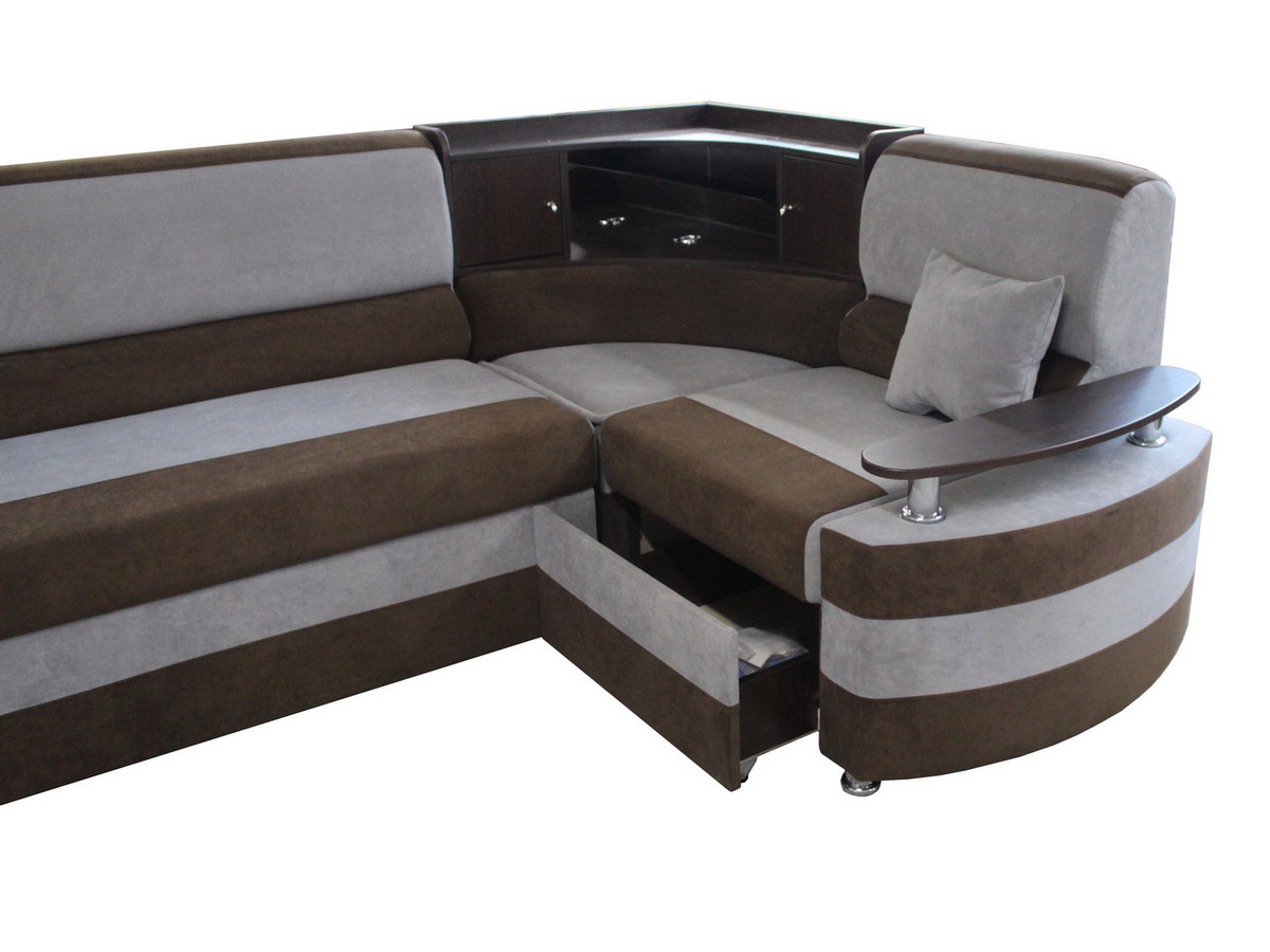 В угловых моделях есть вместительный бельевой ящик. Доступ к бельевому ящику облегчает специальный механизм подъёма.