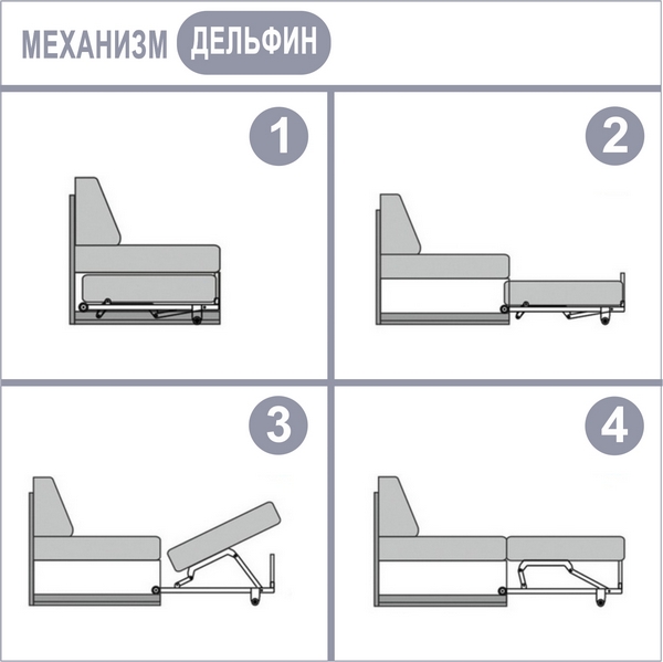 Принцип трансформации - выдвинув механизм из ниши под сиденьем, Вы тяните за специальную петлю-ручку и устанавливаете подъёмный мягкий элемент в горизонтальное положение, который, стыкуясь с сиденьем, образует спальное место.