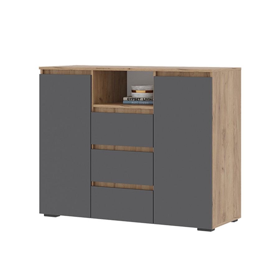 Хелен КМ 01 Комод 3 ящика и 2 створки Крафт золотой/Графит серый - заказать по выгодной цене | Ваша Мебель Новокузнецк