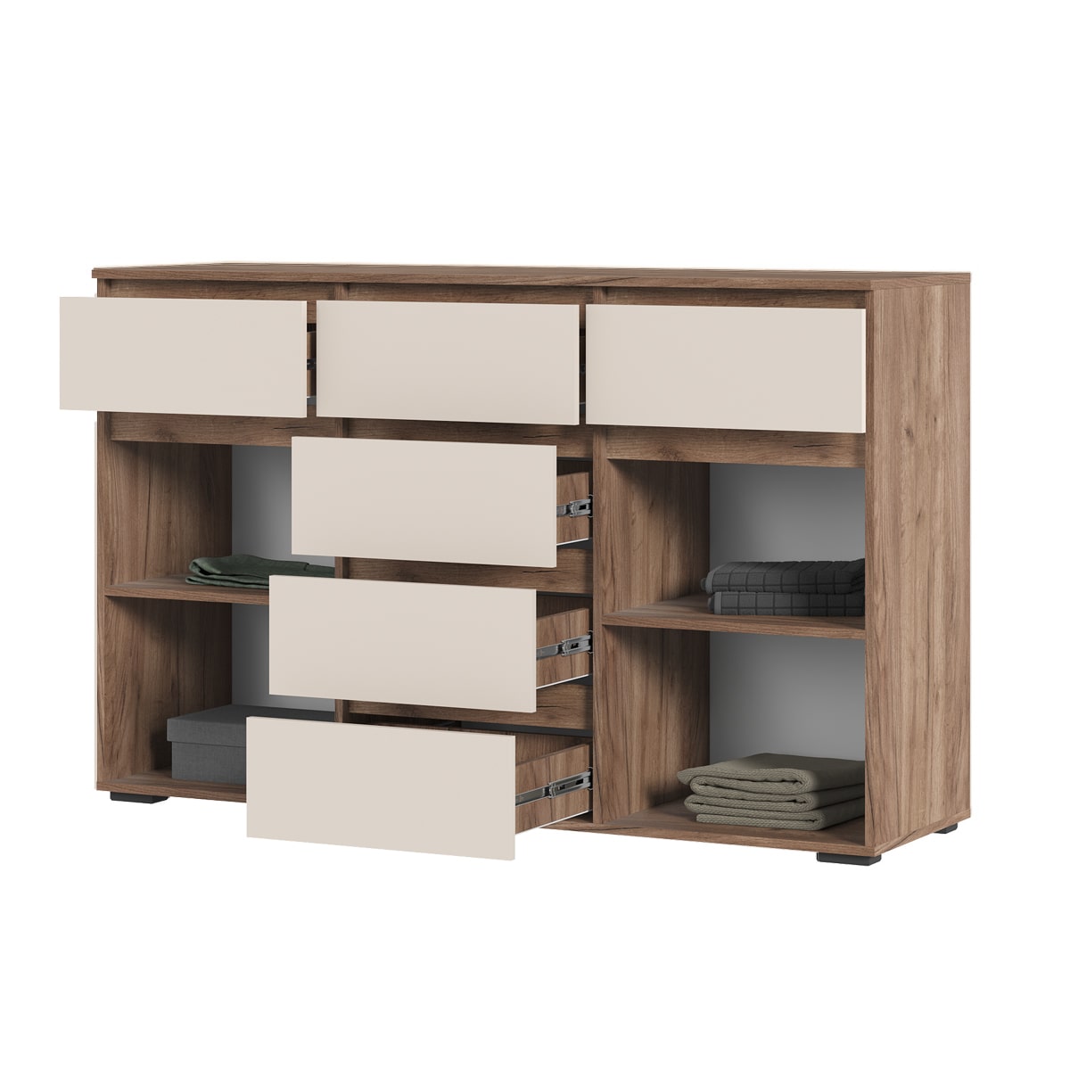 Хелен КМ 05 Комод 6 ящиков и 2 створки Дуб крафт табачный / Кашемир