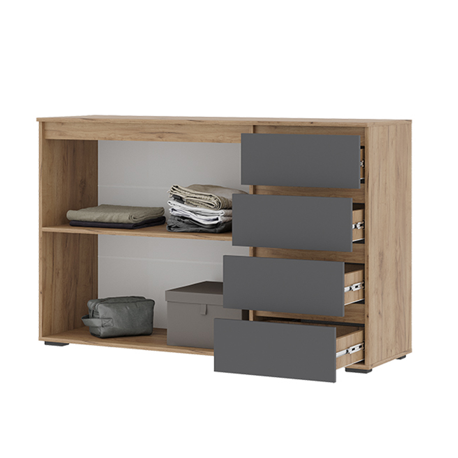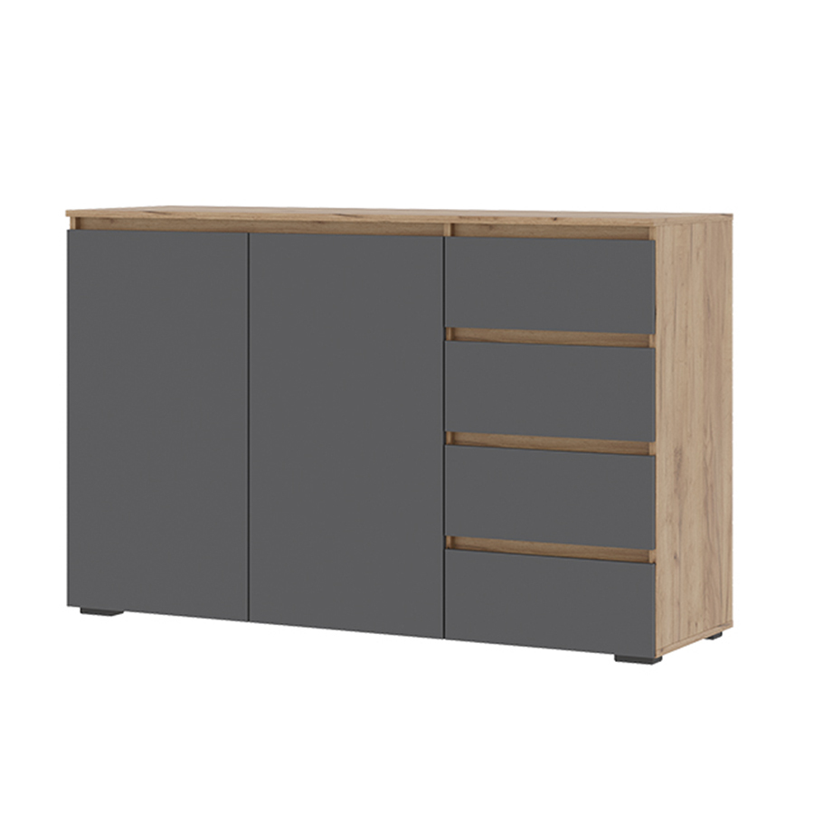 Хелен КМ 06 Комод 4 ящика и 2 створки Крафт золотой / Графит серый - заказать по выгодной цене | Ваша Мебель Новокузнецк