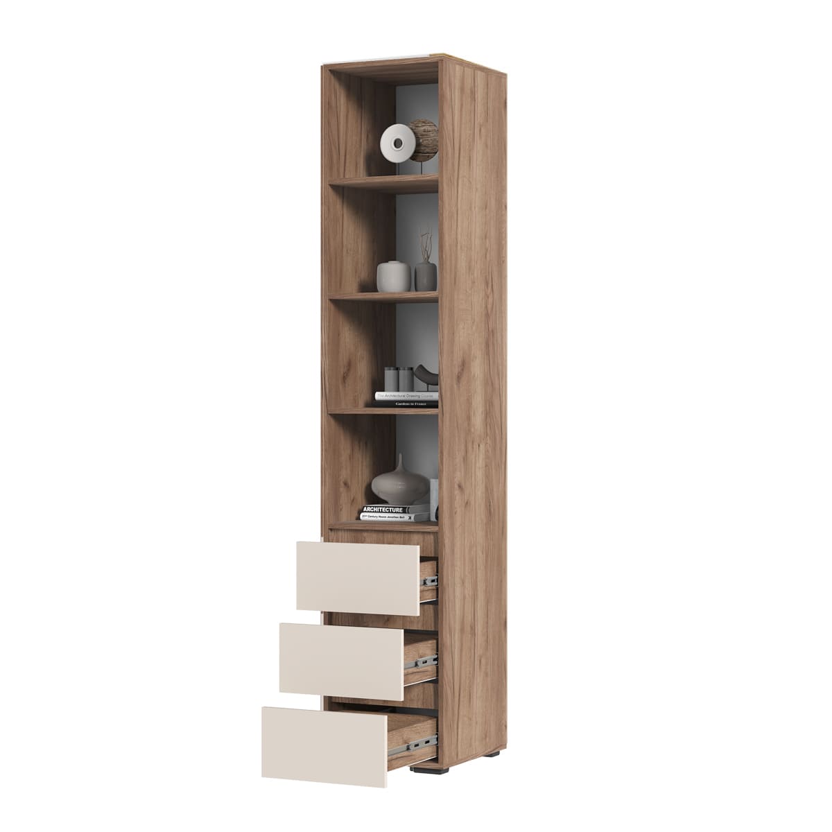 Хелен ПН 02 Пенал открытый с ящиками Дуб крафт табачный / Кашемир - заказать по выгодной цене | Ваша Мебель Новокузнецк