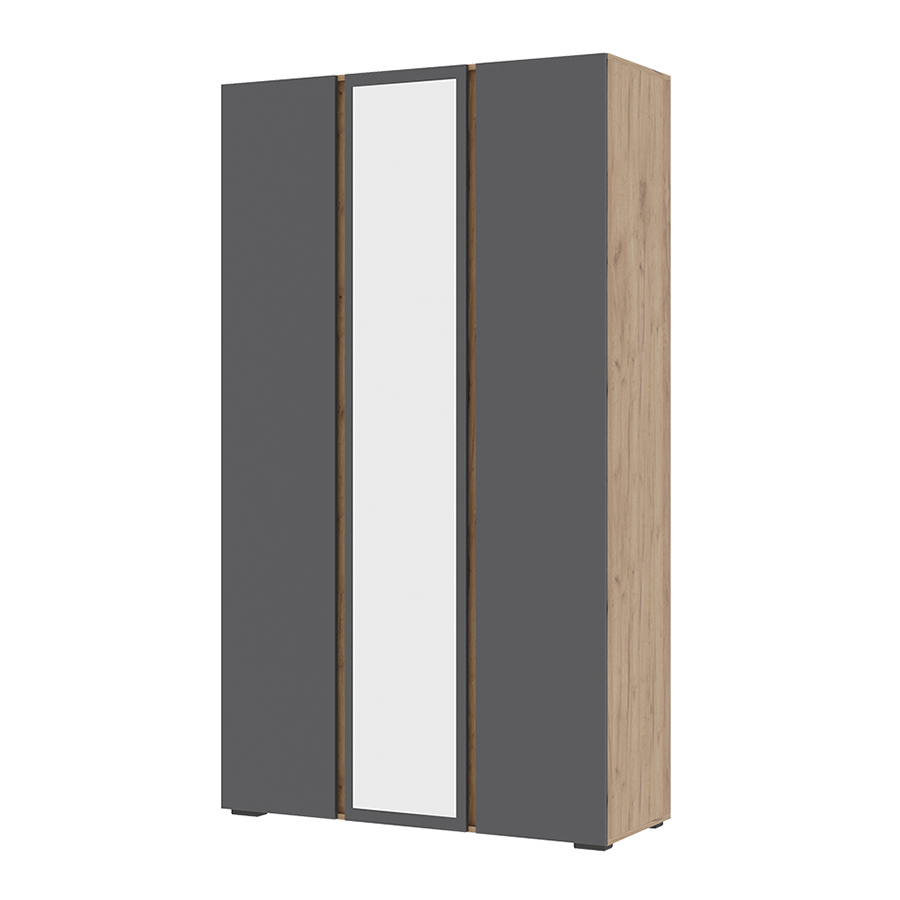Хелен ШК 02 Шкаф 3-х дверный с зеркалом Крафт золотой / Графит серый - заказать по выгодной цене | Ваша Мебель Новокузнецк