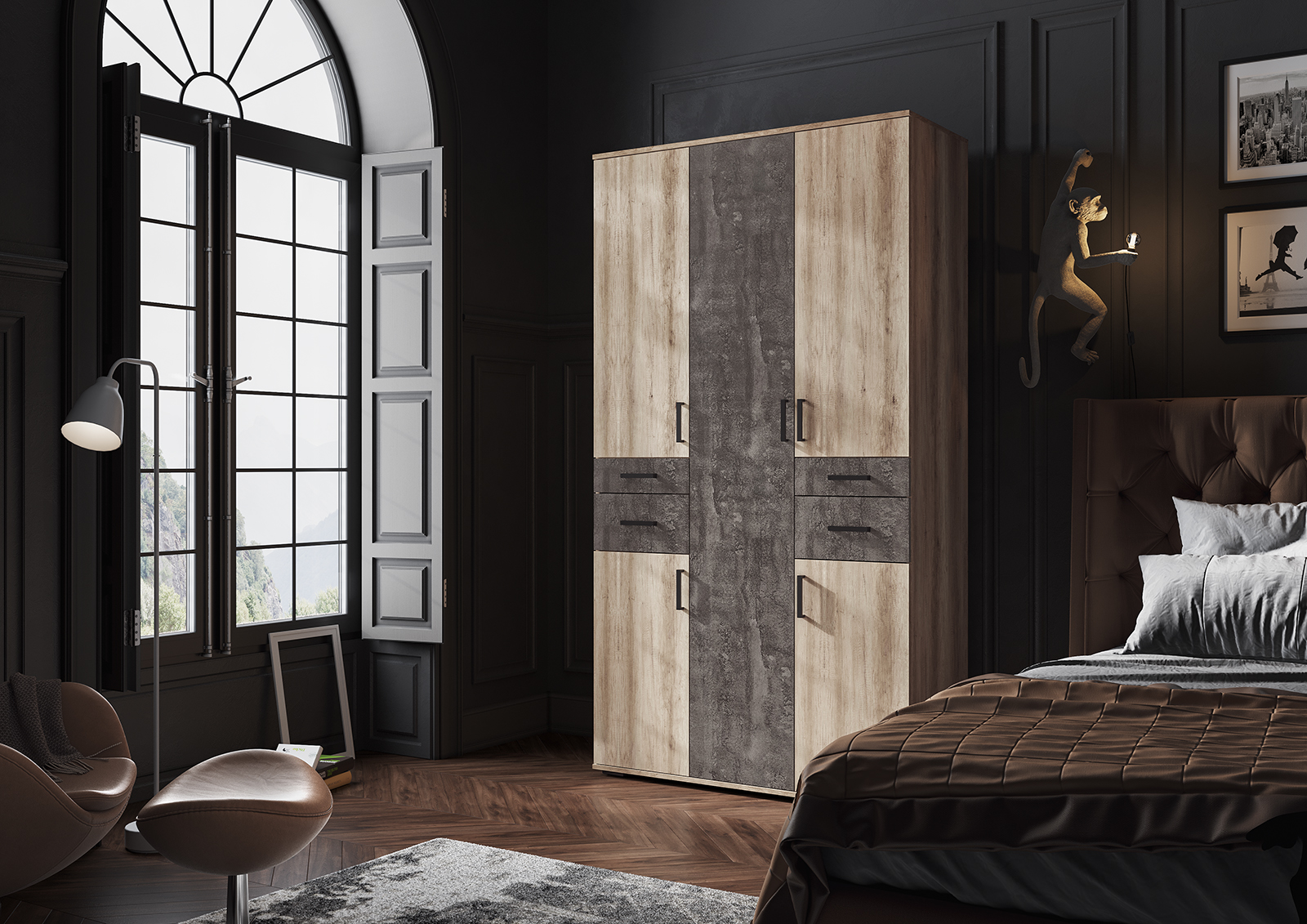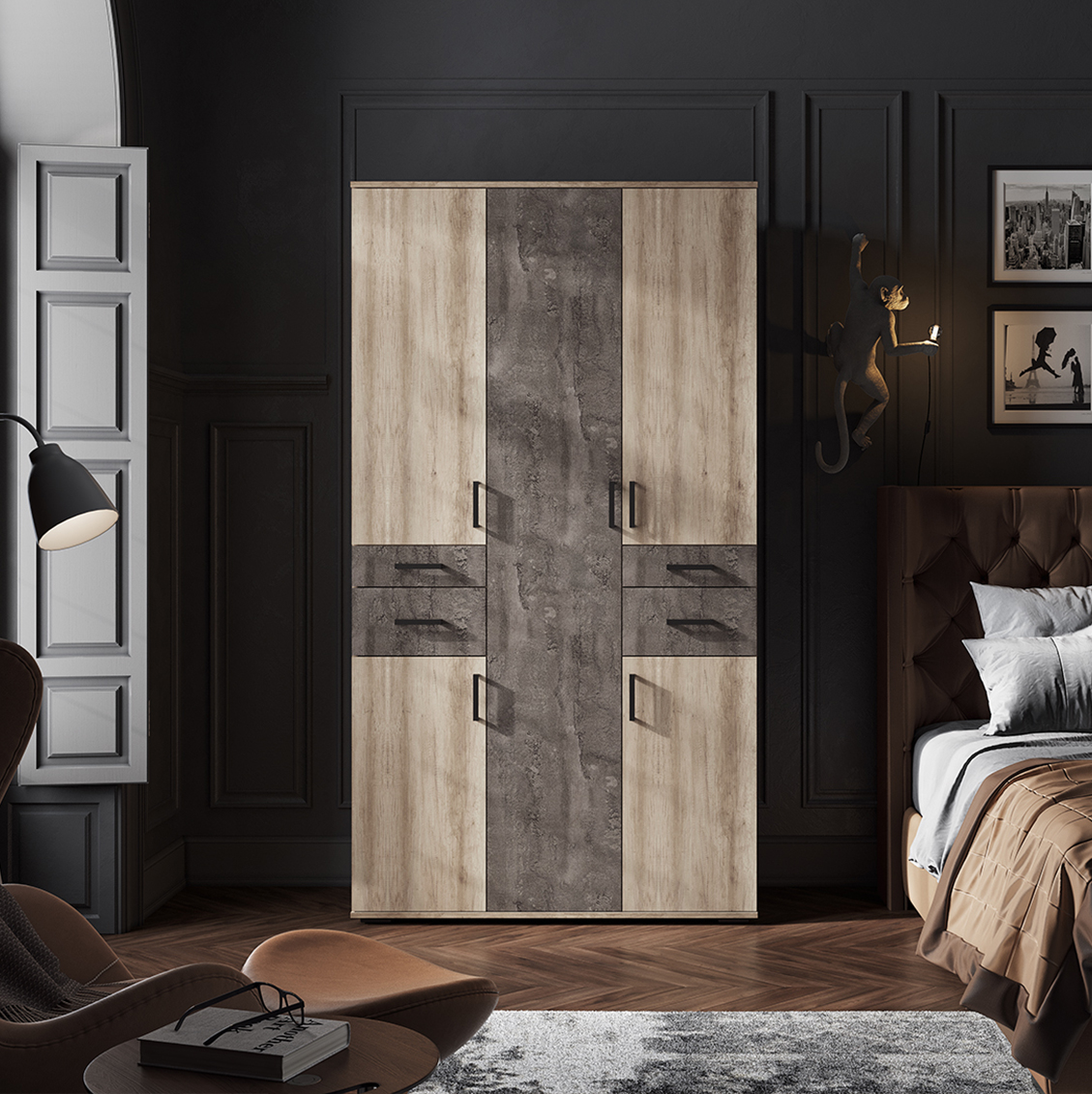 Шкаф можно комбинировать с другими шкафами из коллекции "Нельсон"