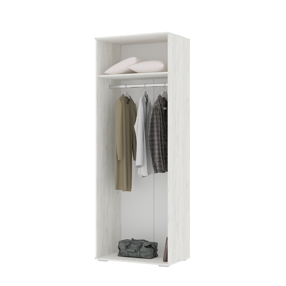 Полка внутри и хромированная штанга позволят компактно разместить одежду.