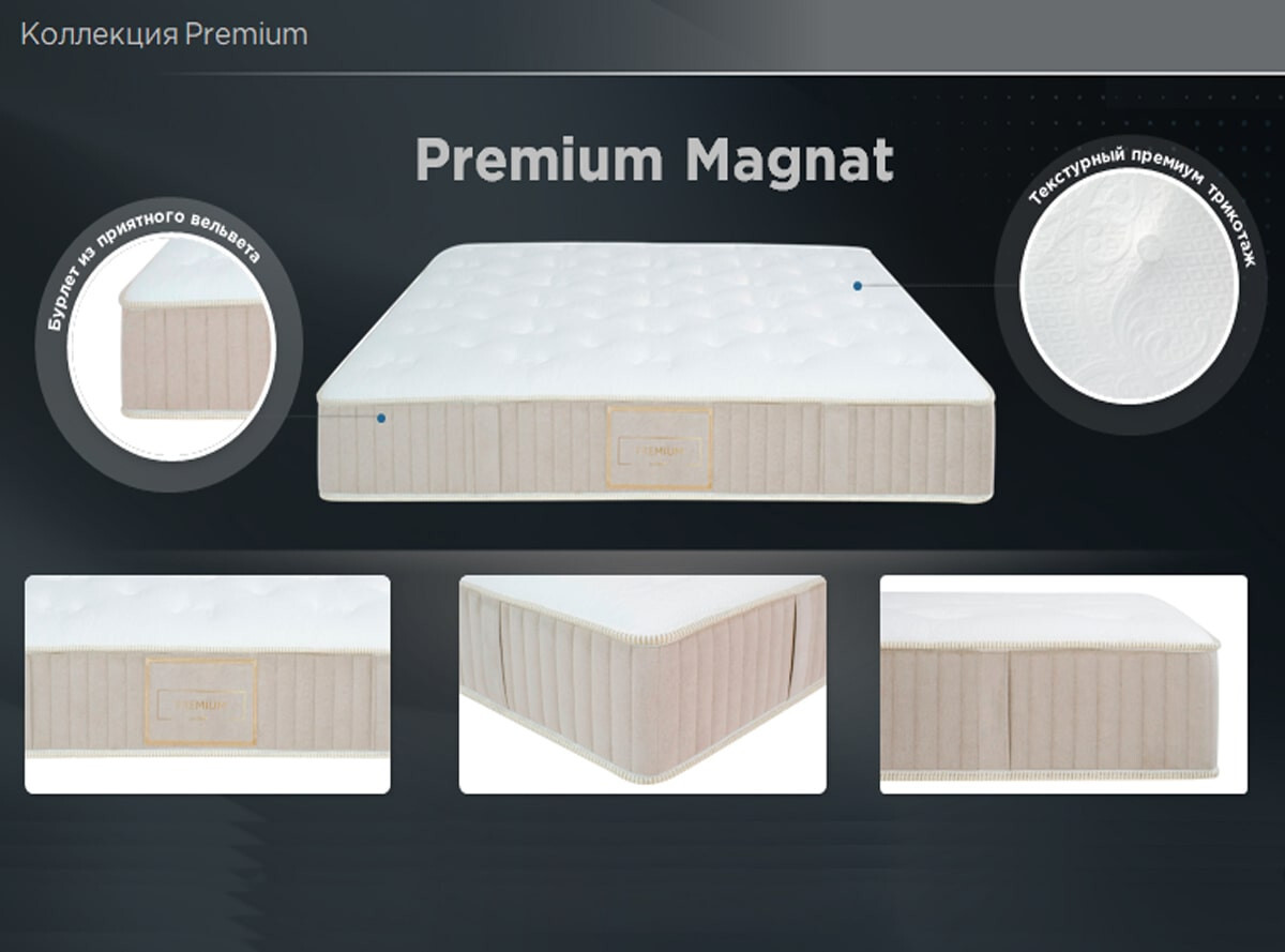 Состав матраса Premium Magnat:- Чехол из высокообъемного трикотажа с Soft Cloud, стёганый на эластичной пене Ultra Feel Foam